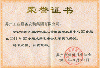 苏州珍珠宝石首饰国际生意中心QC小组在2011年QC小组效果宣布会上荣获优异奖
