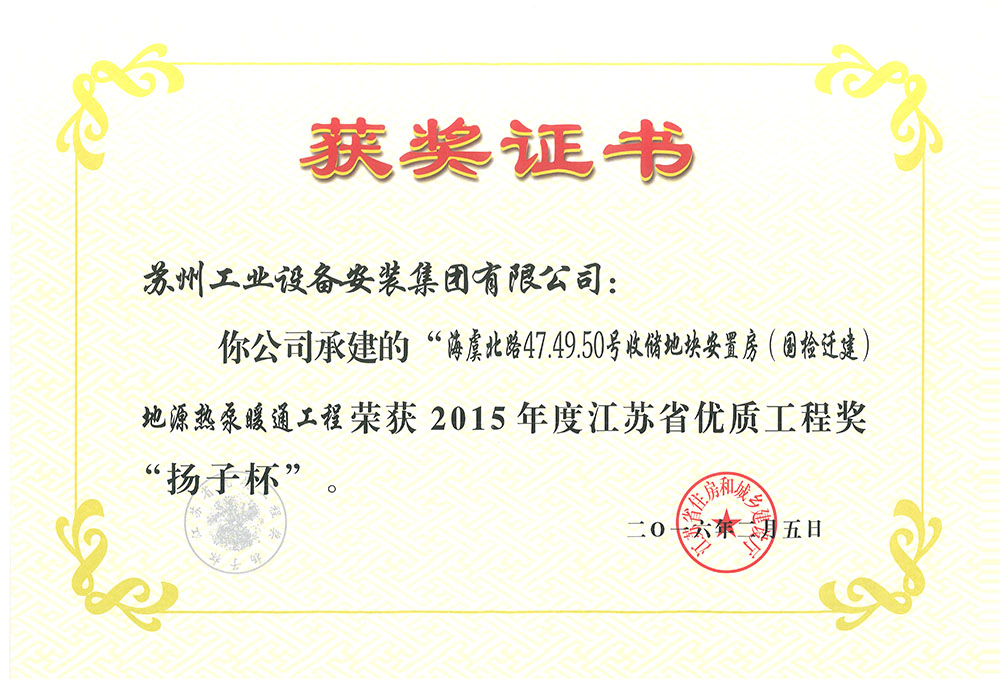 海虞北路(国检迁建)地源热泵暖通工程 扬子杯