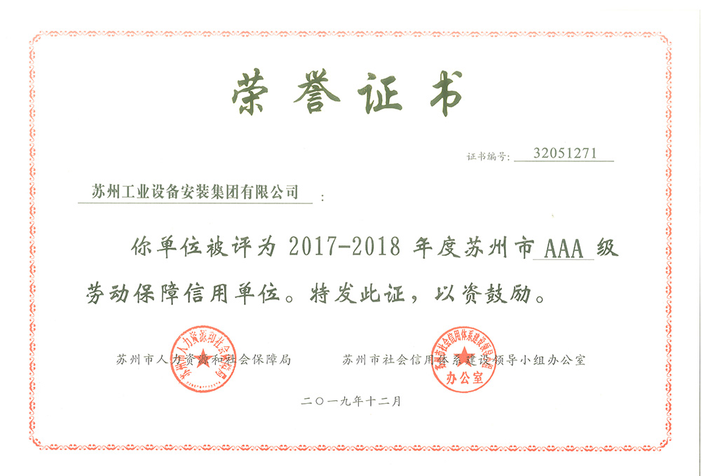 苏州市AAA级劳动包管信用单位