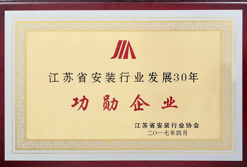 江苏省装置行业生长30年功勋企业