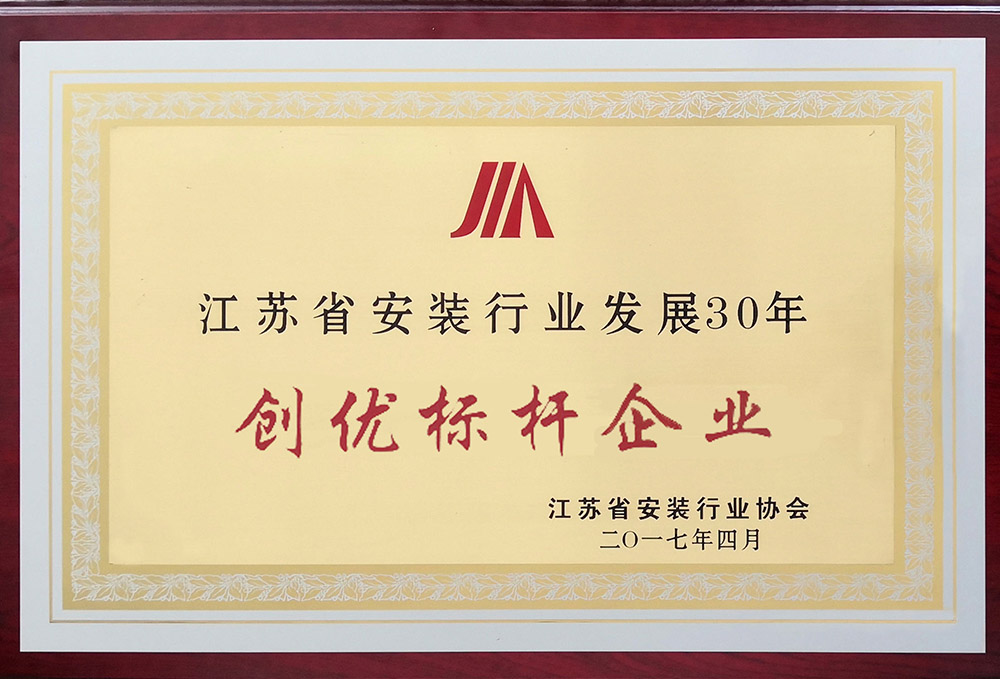 江苏省装置行业生长30年创优标杆企业