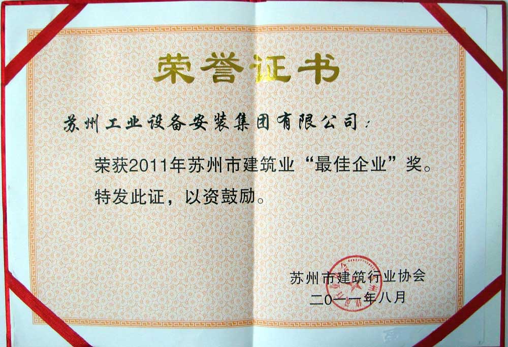 2011年苏州市修建业‘最佳企业’奖
