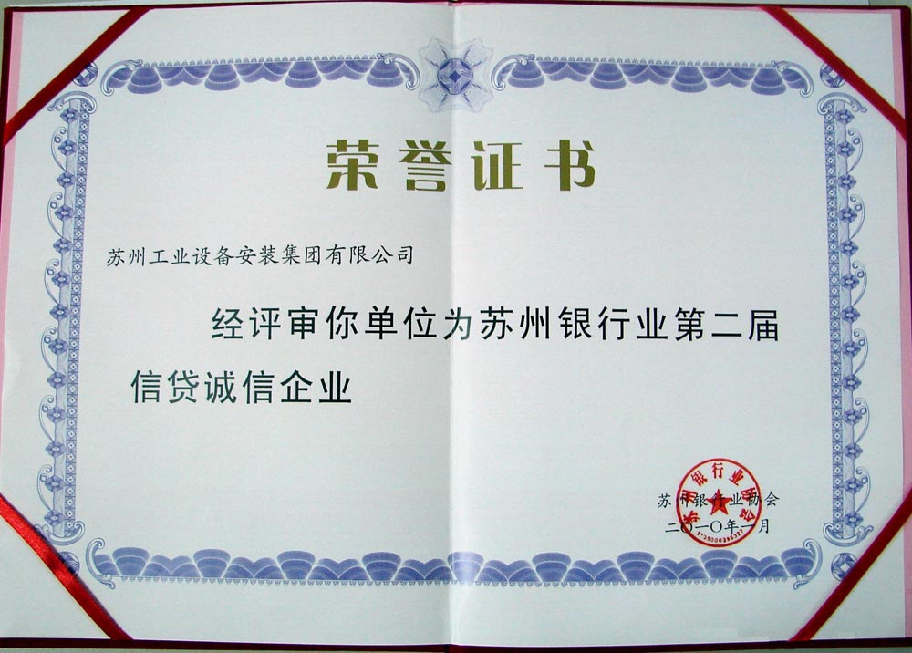 苏州银行业第二届信贷诚信企业