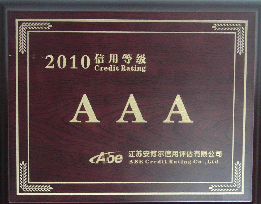 江苏省2010“AAA”级信用品级