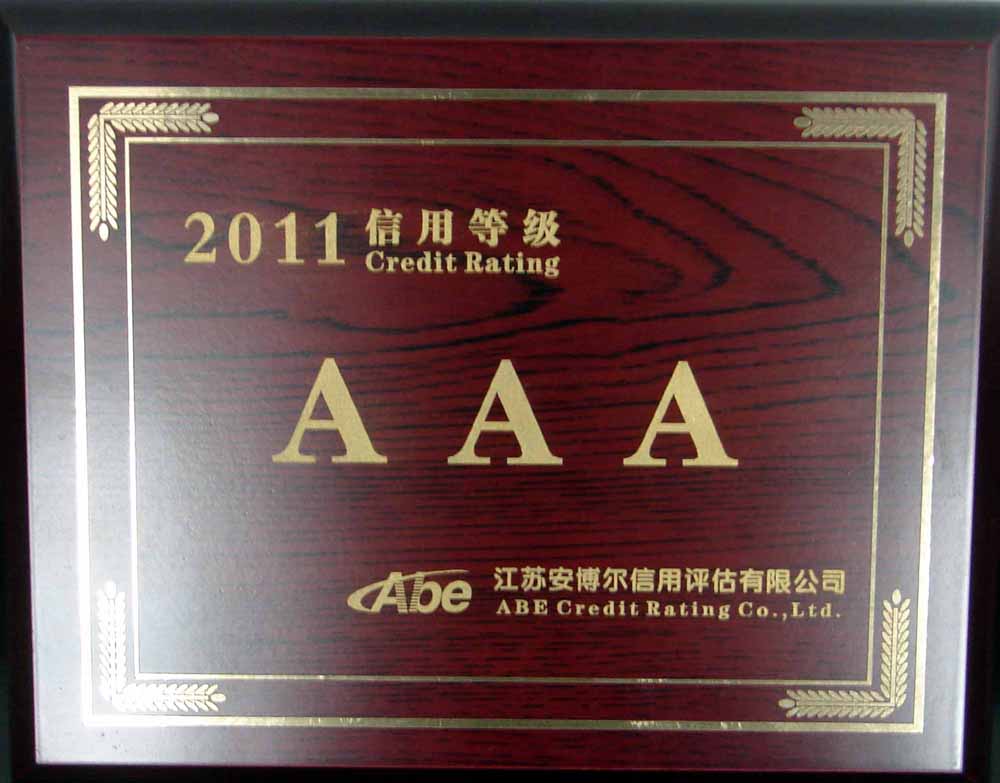 江苏省2011“AAA”级信用品级